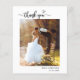 Budget Modern Boho Heart Typography 2 (two) Photo Wedding Thank You Thin Card. Modern Stylish wedding thank you template featuring a full vertical photo on the front with overlay text "Thank You" in a hand-written calligraphy swash tail font script with cute love heart motif in white on the picture. ***PLEASE NOTE! *** BUDGET PAPER IS THIN. *** UPGRADE THE PAPER FOR A THICKER PAPER. *** Add your name and thank you message. If you prefer to handwrite your note, just delete the sample text to make more space. If You need help, please contact designer!