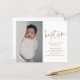 This modern photo baby baptism invitation features hand lettered calligraphy script baptism art that is moveable and you can easily change the colour of, a vertical photo and editable text. Click the edit button to customize this design.