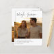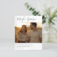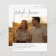 Modern & budget photo wedding invitations aligned to the left with traditional classic typography. These black and white wedding invitations are elegant and minimalist while staying stylish due to the modern handwritten lettering and simple layout. The front of these cards features a vertical line divider to the left of the card, with all the text aligned to it. At the top of the card, the couple's names are written in boho handwriting-style calligraphy. Below, there is an engagement photo of your choice. At the bottom of the card, there is the date and venue or city. We have only included the basic information on the front so it can be used as a reminder or save-the-date. The rest of the details appear on the back. The back has a vertical line divider to the right to mirror the design on the front. The date, time, venue, address, and reception information are at the top, with a second custom photo below. We love photo wedding invitations as they become beautiful keepsakes and memories. Your guests will love to put these elegant wedding invitations on a pinboard, attached to the calendar, or stuck to the fridge! After the event, they can be added to a photo album. Instantly edit this invitation template by clicking on "Personalize" and changing the text and uploading your photos. Create your own unique wedding invitations with pictures! As part of the budget selection on Zazzle, this sheet isn't a standard invite size or paper quality. If you want this design on an invitation card you can find it in our store or use the Zazzle Make Machine to transfer it onto the product of your choice. There is a second version of this design available in the collection featured on this page. Feel free to message me with any questions - I'll be happy to help!