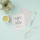Modern classy typography bold wedding save the date card. With modern, elegant typography and modern art deco inspired backer design. Colours can be customized.
