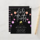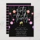 Celebrate the big 30th birthday in style and affordability with this modern colourful sparkle 30th birthday invitation. Design features the words " dirty thirty" in a modern handwritten script font with a border of colourful sparkle glitter drops and two gold champagne glasses toasting. Bottom of the card showcases the details of the birthday celebration which can be totally customized to your needs. The reverse side feature a pretty striped pink glam glitter pattern.