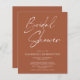 Budget Modern Minimalist Simple Elegant Terracotta Rust Burnt Orange Bridal Shower Invitation featuring our chic handwritten typography and your custom details. Perfect for your posh affair.