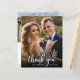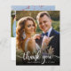 Budget Modern Typography 2 (two) Photo Wedding Thank You Paper. Modern Stylish wedding thank you template featuring a full vertical photo on the front with overlay text "Thank You" in a hand lettered calligraphy swash tail font script font in white on the picture. ***PLEASE NOTE! *** BUDGET PAPER/FLYER IS PAPER THIN. *** UPGRADE THE PAPER FOR A THICKER PAPER. *** Add your name and thank you message. If you prefer to handwrite your note, just delete the sample text to make more space. If You need help, please contact designer!
