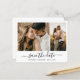 Budget Minimalist Elegant Modern Typography Script 2 Photo Collage Save The Date Cards in black and white. This romantic delicate design perfect for modern wedding. Features 2 grid photo collage, a whimsical calligraphy in hand lettered style swash tail font calligraphy or typography script and a love heart. Easy to personalize it with your wedding details and pictures. Low budget affordable cheap save the date wedding cards.