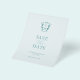 Announce your engagement with this modern budget save the date sheet. It features a mix of classic and script typography in turquoise over a solid pale blue background. Enter the bride and groom's monogram in the centre of a crest. All the colours can be customized to suite your wedding colour scheme. Use the template fields to personalize with your name and wedding date. Mix and match with many of my designs to create your customized wedding theme. A minimal yet elegant design for beach weddings on a budget. To see the matching wedding stationery suite visit www.zazzle.com/dotellabelle