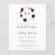 This wedding design features the bride and groom's monogram initials in dark purple framed by a watercolor wreath of blush and purple flowers and green foliage. Personalize the text with the couple's names in elegant purple handwriting script and the wedding details in charcoal grey. The reverse side is a solid shade of purple.