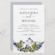 Budget Mountain Rustic Outdoor Berries and Greenery Watercolor Spring Wedding Dusty Blue and Green Elegant and Modern Invitations on White background - includes beautiful and elegant script typography with modern botanical leaves and greenery for the special Wedding day celebration.