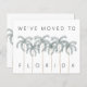Budget We Moved to Florida Palm Trees New Address Card... The front of our affordable Florida moving announcement features a small forest of palm trees, telling recipients at a glance the location of your recent move, even if they didn't read the text "We've Moved to Florida." The back of the card contains all of the new details your family and friends will need to stay in touch. The example text on front and back can be easily revised on the personalization template. (The letters in "FLORIDA" are spaced to fall between the tree trunks (in case you decide to change the text.) PLEASE NOTE: Envelopes are not automatically included with budget cards, although you can order them at the same time as your cards by using the "Envelopes" drop-down menu.