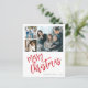 Modern stylish Merry Christmas red white handwritten calligraphy script 6 family photos simple white BUDGET holiday card with your custom personalized text on both sides. +++++++++ PLEASE NOTE that the background and script colours are editable. You can change any of them after selecting CUSTOMIZE option down below the PERSONALIZE IT menu. If you don't feel at ease changing it, please ask Zazzle Live Design Service or the designer for help. ++++++++++++++++++++++ PLEASE READ THIS BEFORE PURCHASING! This is a budget affordable card printed on a paper sheet (each sheet has one card). ++++ For the best rapport price-quality, our advice is to choose the Semi-Gloss paper type (it is thick enough to be used for stationery) ++++ If you need envelopes, choose the ENVELOPE OPTION. +++ Double-check all the information and spelling of your text because you will receive exactly what you see - no one else will check anything before printing. ++++ This card is designed for size 4.5" x 5.6". In the case you choose another size of the card and text goes outside page, everything needs to be fixed before adding the product to cart. Please ask Live Design Service for help.