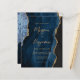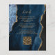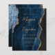 This elegant wedding invitation features a background image of navy blue watercolor agate trimmed with faux gold glitter. The customizable text combines gold-coloured modern handwriting, copperplate and italic fonts. The reverse side provides space for wedding details on a matching navy blue agate background, along with a QR code guests can scan to visit your website and RSVP, which saves the cost of printing and mailing separate RSVP cards.