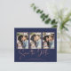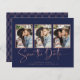 BUDGET Navy Blue Art Deco Rose Gold Handwritten Save the Date Multiple Photo Card in a font that is elegant and evokes a romantic handwritten feel. On the back is a trendy, geometric art deco style design in chic rose gold foil on a navy blue background. Designed to use three of your favourite photos for added customization. Easily add your names and dates for a truly personalized design. **Our BUDGET paper is smaller and more delicate, but still beautiful! Don't forget the envelopes!** If you need assistance or matching items, please contact us at cedarandstring@gmail.com