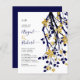 BUDGET Navy blue branch with gold flowers and initials wedding invitation. A beautiful design for your wedding showcasing a cascading blue and black branch with gold blossoms. The back is of navy blue colour.