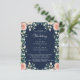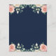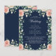 This Budget Modern Navy Blue Floral Wedding Flyer - features blush pink and dusty beige chic roses with greenery frame on the trendy navy blue background. The reverse side of the bridal invitation is navy blue with watercolor blush pink and beige flowers.