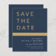 Budget Wedding Elegant Navy Blue and Gold Save the Date Cards. The Save the Date cards contain a modern hand lettered cursive script typography that are elegant, simple and modern to use after you minimalist simple wedding day celebration.