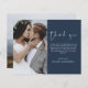 Budget Wedding Thank You Cards that have a photo on the front and back. The Thank you cards contain a modern hand lettered cursive script typography that are elegant, simple and modern to use after you wedding day celebration.