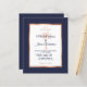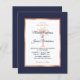 Invite your guests to help you celebrate your special day with this elegant budget wedding invitation featuring modern script, rose gold copper and navy blue text including an artistic palm tree and metallic rose gold copper frame on the front. A navy blue background is on the front and back of the card. If you need help or a custom order, please contact me.