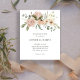 This simple, elegant budget wedding invitation features a boho rustic bouquet of watercolor flowers and greenery in neutral shades of peach terracotta and ivory, on a white background.
