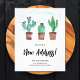 This flyer moving announcement card is decorated with watercolor cacti, a blue sky, and New Address in stylish typography. Easily customizable with your new address. Use the Design Tool to change the text size, style, or colour. As we create our artwork you won't find this exact image from other designers. Original Watercolor © Michele Davies.