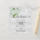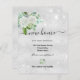 A faux silver metallic looking background decorated with white roses, florals, greenery and faux glitter dust. With the thext: New Home. Personalize and add your new address and name.