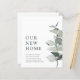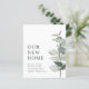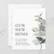 Budget New Home Elegant Watercolor Eucalyptus Moving Announcement... Our budget botanical new address card features an elegant watercolor eucalyptus branch in shades of dusty green drawing attention to the moving announcement text beside it The back of the card contains all of the updated new details your family and friends will need to stay in touch. All example text on front and back can be easily revised on the personalization template. PLEASE NOTE: Envelopes are not automatically included with budget cards, although you can order them at the same time as your cards by using the "Envelopes" drop-down menu.