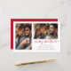 Newlyweds 2 Photos Merry Christmas Card. A budget price 5.5” x 8.5" FLAT card for your festive greetings on a shiny SEMI GLOSS 110 lb card stock (similar to the thickness of a postcard) PLEASE NOTE: The envelope supplied with this card is larger than the card at 6.75" x 9". Add two of your favourite photos to your holiday wishes and stylish script for the main header. The rest of the text can be easily personalised and replace the sample photos with your own. Colours of text and background can also be changed via the customise further option.