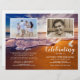 Programme funéraire funéraire de la colombe avec un arrière - plan de photo de partout dans l'océan, sur le devant une photo du défunt, leur nom, les dates, le lieu du mémorial, la date de l'événement. A l'intérieur se trouve une nécrologie et un ordre de service ; et au dos une autre photo, une note de remerciement et le deuxième lieu pour après les funérailles. REMARQUE : Ceux-ci viennent comme un morceau plat de papier de qualité, vous aurez besoin de les plier vous-même.