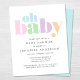 This budget-friendly gender-neutral baby shower invitation features "oh baby" in a rainbow of pastel teal, blue, green, pink, purple and orange modern bold typography. You can easily personalize with the shower details and customize "Baby Shower" to "Baby Boy Shower" or "Baby Girl Shower" if desired.