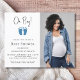 This modern Budget Boy's Baby Shower Invitation is decorated with cute baby feet in blue glitter and the words, Oh Boy!