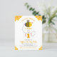 “Our little honey bee.” Here’s a great way to celebrate your child’s birthday with friends and family. Send out this cute, fun, simple, festive, modern, gender neutral, personalized budget birthday party invitation. A sweet, playful visual of a cute, kawaii, bee with orange yellow calligraphy script overlays a white background. An adorable patchwork yellow, apricot and orange honeycomb pattern is on the back. This charming invitation is guaranteed to set just the right tone for your event! Matching and coordinating plates, napkins, stickers, thank you notes and other birthday goodies are also available in this special and fun collection.