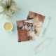 budget abstract painted modern teal cream terracotta chic wedding save the date. Modern on trend serif text and rust terracotta backer. photo save the date