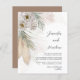 This unique botanical design has been painted in watercolor, and is an original illustration from our studio. Featuring elegant pampas grass in beige and terracotta with green and earthy palms, and ferns with beautiful off white flowers. Have fun creating your perfect invitation.