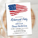 USA American Flag Military Retirement Party Invitations. This modern and trendy red white blue, stars and stripes, American Flag party invitations are perfect for a military retirement party, soldiers going away party, military deployments send off, military welcome home celebration, and military graduation events, as well as police officer retirement, state police department retirement party, law enforcement, firefighters, fire department and retired veterans. Personalize this american flag invitation with your soldiers, police or veteran event, name, and party details.