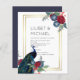Beautiful Peacock with Teal and blue, burgundy flowers, sage green leaves feature on this fall, autumn, winter wedding items. Part of a larger collection that includes budget wedding invitations, save the dates, RSVPs, thank you photo cards, bridal and wedding party gifts, and more. For a detailed FREE winter wedding planning, guide visit weddingdesignchic.com.