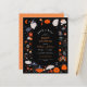 Peek a boo! This play on words is perfect for a Halloween-themed gender-neutral baby shower. These boho style cards feature a frame of cute boho spooky elements: ghosts, pumpkins, spiders, an owl, bats, magical flowers, candy, a crystal ball, moons, stars, and more, all against a black background. Inside the border, "peek a boo!" is written curved over the other text in lowercase letters. Your event details appear in simple typography, with your name or names in script calligraphy. Cards reverse to cute starry sky pattern against an orange background. As part of the budget selection on Zazzle, this sheet isn't a standard invite size or paper quality. If you want this design on an invitation card you can find it in our store or use the Zazzle Make Machine to transfer it onto the product of your choice. Feel free to contact me if you have any questions or would like a custom-made design! Check out the collection link below for matching items!