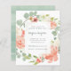 This modern spring bridal shower invitation features beautiful blush pink and cream watercolor peonies and roses with subtle green eucalyptus foliage. As part of the budget selection here on Zazzle, these invitations do not come with envelopes nor do they fit snugly in a standard-sized envelope. The closest size is A6 but there will be a gap of approximately half an inch. If you don't mind the lack of snugness you could use such widely available A6 envelopes. Otherwise, this design can be transferred to a standard 5x7 format (which comes with envelopes) using the design transfer tool. As a rough guide, as of the time of writing, 100 budget invitations (including a volume discount) would cost around $39 whereas 100 standard 5x7 invites including envelopes would cost approximately $135. Your mileage may vary depending on Zazzle's available promo codes, site-wide sales, or changes in pricing.