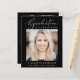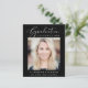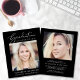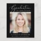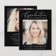 Elegant budget-friendly girl's black graduation announcement and party invitation featuring "Graduation Celebration" in an elegant white script and white typography, her photo and her name, school and class year in simple modern white typography. On the back, add another photo and the graduation party details.