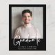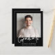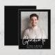 Budget-friendly modern black graduation announcement featuring your photo and "Graduate" in a stylish bold white script. Add the grad's name, school and class year in simple white typography.