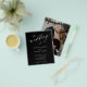 Elegant trendy BUDGET photo wedding invitation PAPER FLYER with "the wedding of" white text and black background featuring a chic calligraphy script. Personalize it with your engagement photo on the backside and your text. ++++++++++ This timeless wedding invite is suitable for modern style formal wedding ceremonies and receptions. +++++++++++++++++++++++++++++++++++ PLEASE READ THIS BEFORE PURCHASING! This is a budget affordable card printed on a FLYER. ++++ Please note that BUDGET PAPER IS THIN - You can upgrade to have this card printed on cardstock ++++ ENVELOPES NOT INCLUDED. +++ Double-check all the information and spelling of your text because you will receive exactly what you see - no one else will check anything before printing. ++++ This card is designed for size 4.5" x 5.6". In the case you choose another size of the card and text goes outside page, everything needs to be fixed before adding the product to cart. Please ask Live Design Service for help.