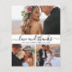 Budget, Minimalist Elegant Modern „Love and thanks” Script 3 Photo Collage Wedding Thank You personalized affordable low budget thin card. Stylish wedding thank you card template featuring 3 photo on the front and 1 photo on the back.