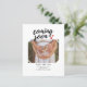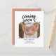 A great way to announce your exciting news with a favourite budget photo pregnancy announcements card that has a black bold script text overlay with the saying "coming soon." Personalize with your name and the expected due date.