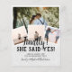 ⭐ Design by LeahG™ Founder of the Low Budget Wedding Network®. Congratulations on your engagement. 📌PIN this design to your wedding moodboard on Pinterest and enjoy your wedding planning journey. 🥰 Your friends and family will love this modern trendy 4 x photo collage engagement announcement or party invitation. Double-sided to ensure you can add all your event details. Modern overlay text that reads " Finally, she said yes!" You can EDIT THIS to read anything else, such as "We are doing it'", "we are getting hitched", "we are saying I do" and more! Be creative. 🖊️ Lots of colour backgrounds to choose from and low budget options (from 0.30) view the attached collection to see them all. ⭐ NOTE that paper weight and size reflects in the prices. For regular cardstock (5x7) use the TRANSFER option on your product page. Most of my designs include template fields on both sides (where allowed by the product) to ensure you get the most value and practical benefit. In the case of invitations, this enables you to include rsvp, gift registry, wedding website, reception details, and, in the most recent designs, a qr scanning code. For other items, you can add text or images as required for your event. Enjoy your wedding planning journey. ©Design and Text LeahG™