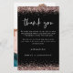 Photo Engagement Rose Gold Glitter Thanks. A LARGER size 5.5” x 8.5” at a budget price, on a SEMI GLOSS 110 lb CARD STOCK, great for invitations, at roughly the same thickness as a postcard, or an elegant 110 lb LINEN stock – for a luxury, slightly thinner feel at great value. PLEASE NOTE THE OPTIONAL ENVELOPES ARE A LITTLE BIGGER IN SIZE AT 6.75” x 9” approx. This budget size alternative is also available in other paper choices. The FELT 100 lbs paper is buff coloured, NOT white, so adds a rustic touch. The MATTE 80lbs paper stock is bright white, for crisp printing, great for your menus and programs, whilst the SATIN 80lbs paper is thin and light, ideal for enclosures Trendy faux rose gold glitter borders the top and bottom edges and Thank You is in a stylish set handwriting style script on a black background. Easily personalise the rest of the text. On the back replace the sample image with a favourite one from your party.