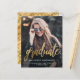 Modern graduation announcement featuring a custom vertical photo. The word "graduate" appears in gold faux foil script, with the graduate's name, school, and year of graduation below in white sans serif font. Easily replace the sample image with your own graduate's photo. A black gradient screen helps ensure the text pops. The reverse features a glamorous gold faux foil polka dot pattern. Ideal for high school or college graduation.