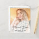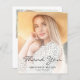 Modern graduation thank you card featuring a custom vertical photo on the front and a horizontal photo on the reverse. The words "Thank You" appear in dark charcoal grey script, with your name and year of graduation below in sans serif font. Personalize the reverse side with a message of your choice in grey sans serif and add your signature line in decorative handwriting font. Easily replace the sample images with your own photos. A white gradient screen helps ensure the text on the front of the card pops. Ideal for high school or college graduation.