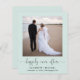 Chic budget-friendly light mint green elopement / private wedding announcement and reception invitation that features your photo, "happily ever after" in a stylish script with swashes and your first names and wedding date and location. On the back, personalize your wedding announcement in more detail, add a reception or party invitation and sign your married names in a signature-like script.