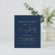 A value for money BUDGET alternative on a smaller size 4.5 x 5.6” semi-gloss 110lbs weight, which is of similar thickness to a postcard (however is not suitable to use as a postcard.). PLEASE NOTE there is ONE invite per sheet. Budget Script Navy Gold Photo Wedding Evening Invitation. A set handwritten style for Evening Party and the rest of the text you can easily personalize. The text and background colours can be changed to any or your choice via the customize further option.