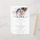 Budget Photo Overlay Script Wedding Menu. An informal set typography in black for the main heading Menu complementing the rest of the text which you can easily personalize. Replace the sample photo with your own favorite.