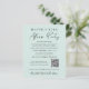 Budget-friendly light mint green elopement or private wedding announcement and wedding reception invitation. The front features "Happily Ever After Party" in simple typography and a stylish modern script. Personalize your announcement and invitation and add your names in a signature-like script. Input the URL address of your wedding website to create a QR code for guests to scan for all the details an to RSVP online. The reverse side features your favourite wedding photo, your first names and wedding date.