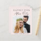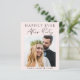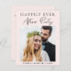 Budget pastel pink elopement or private wedding announcement and reception invitation featuring your photo, "Happily Ever After Party" in simple typography and a chic modern script and your names and wedding date. On the reverse, personalize your announcement and reception details, input your wedding website address to create a QR code for your guests to scan for more information and to RSVP online, and add your names in a signature-like script.