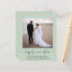 Elegant and budget-friendly sage green elopement or private wedding announcement and reception invitation. The front features your photo, "happily ever after" in a chic script with swashes and your first names, wedding date and location. On the back, personalize your wedding announcement and reception or party invitation, input your wedding website URL address to create a QR code for guests to scan to see your wedding photos, all the details and to RSVP online and sign your married names in a signature-like script.